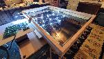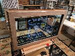 | Constructed a full sized touch display using dielectric 2 way glass, a 42inch overlay IR touch frame, a 42inch LCD blue light special from best buy, oak wood planks from lowes for the box frame, and a raspberry pi running a full screened browser in kioks mode. For some extra bells and whistles, I put RGB LED strip around the sides and a zwave receiver inside so I power the whole thing on and off remotely as well. |